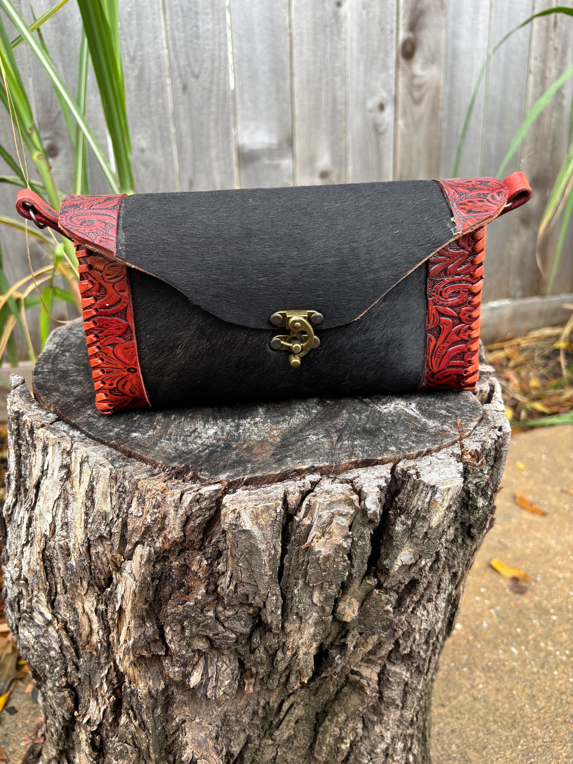 Bolsa Cincelada con Pelo de Res Negro