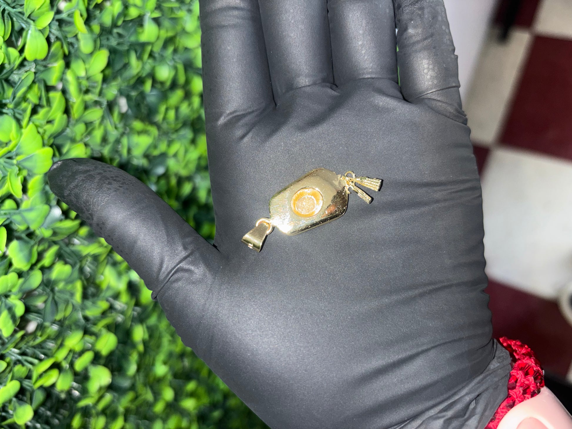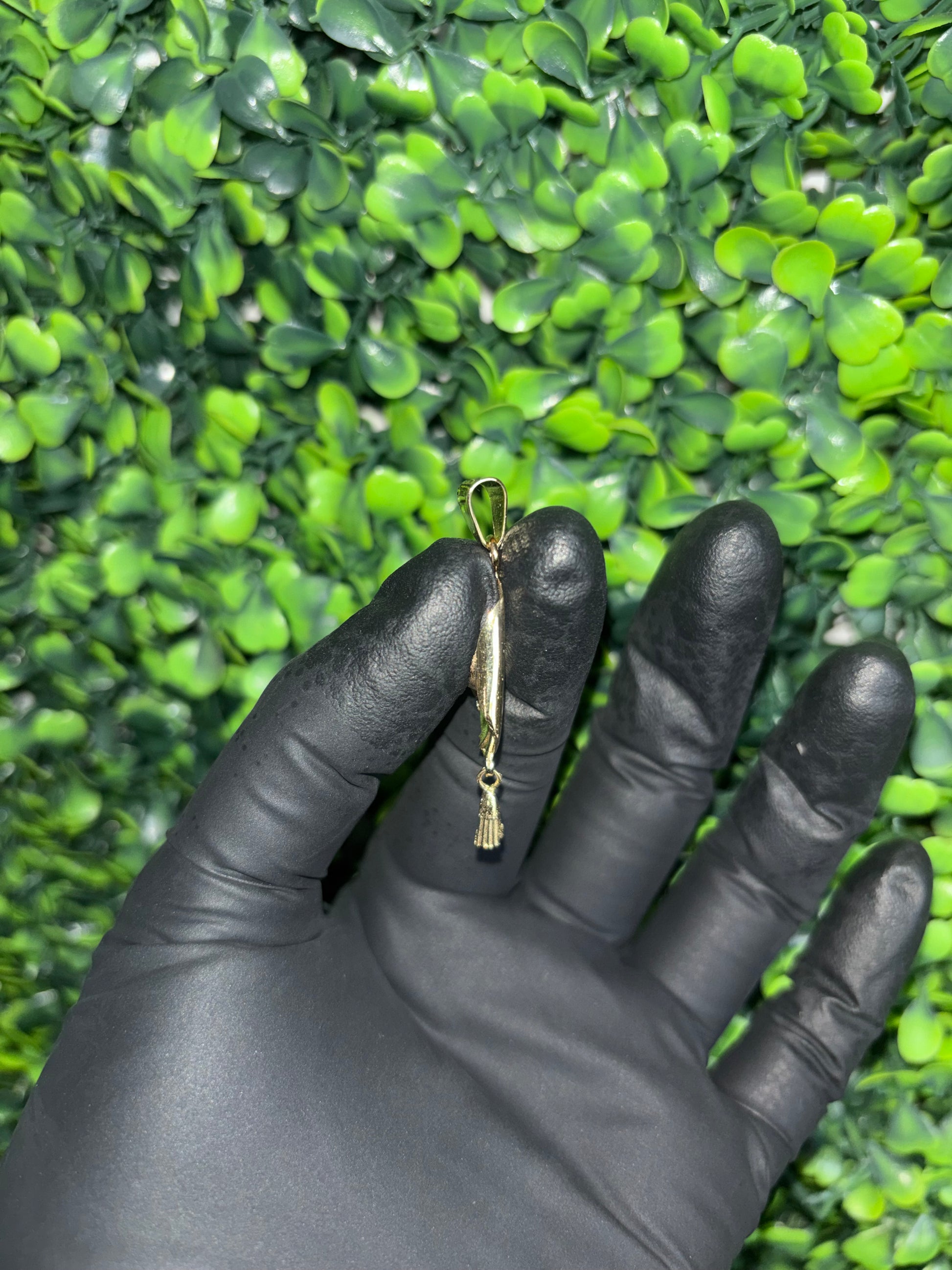 Fabricado en oro de 14 kilates, con un peso aproximado de 4 gramos. Mide cerca de 2 pulgadas, tamaño ideal para que luzca sin ser incómodo.