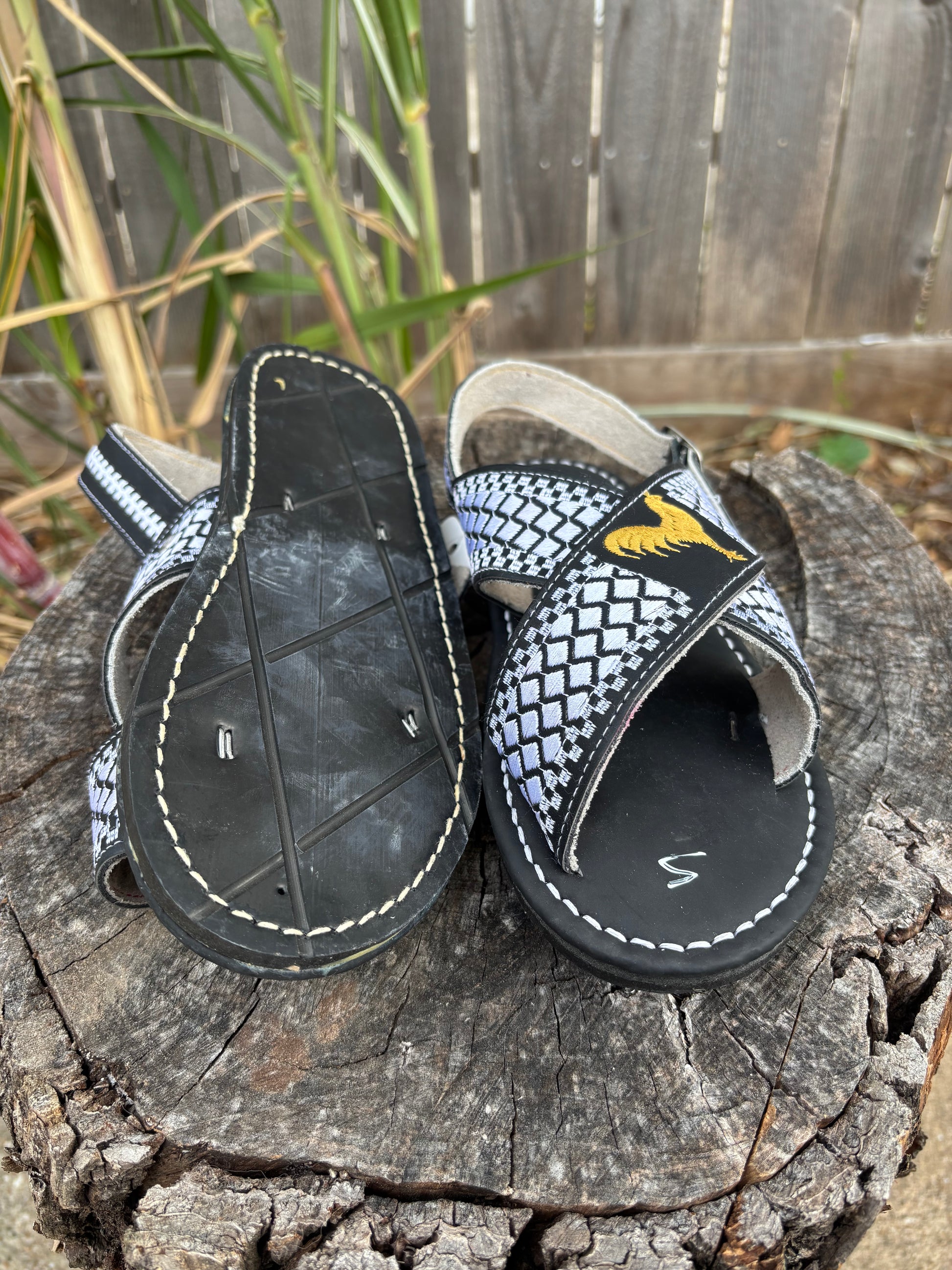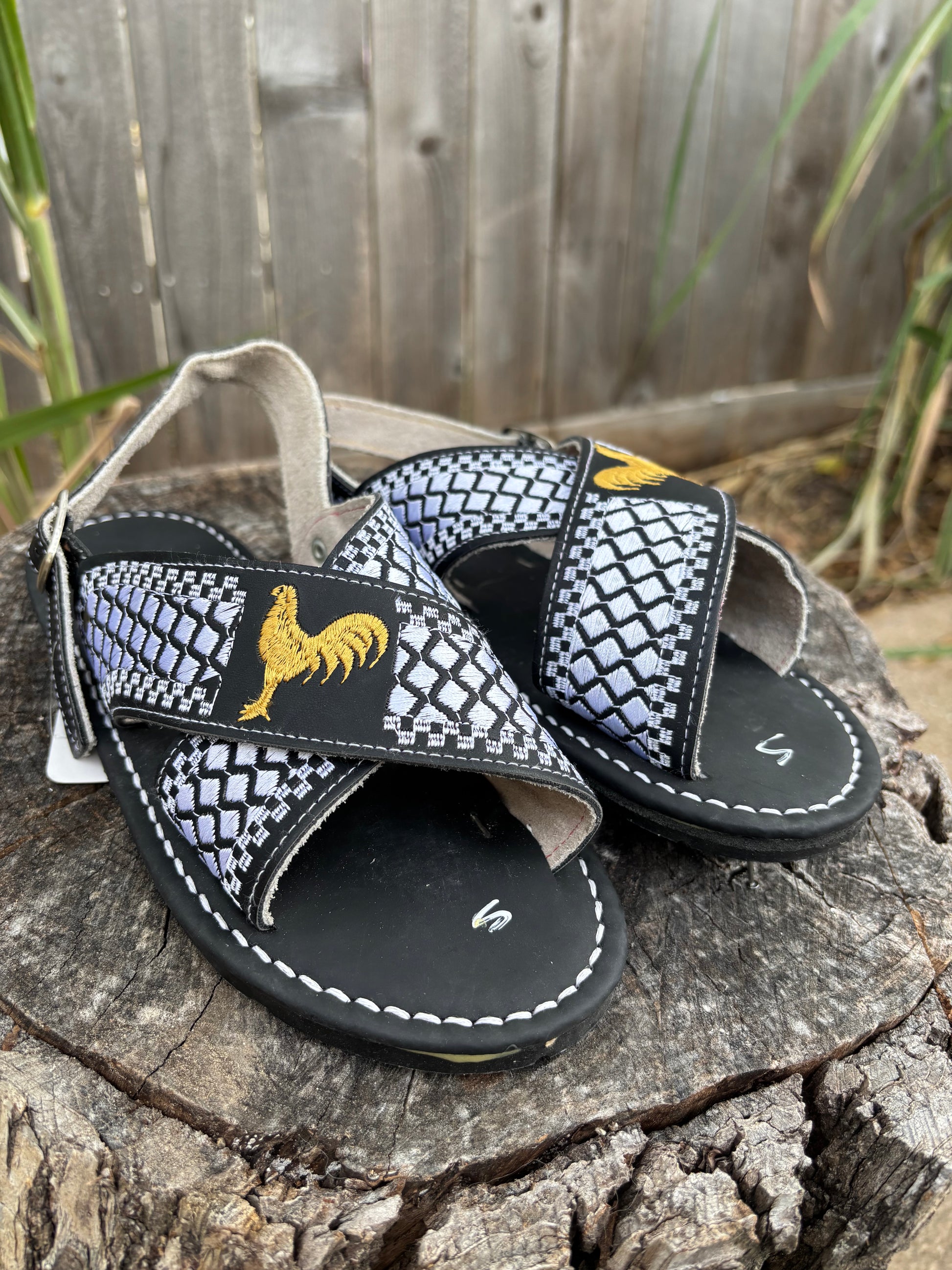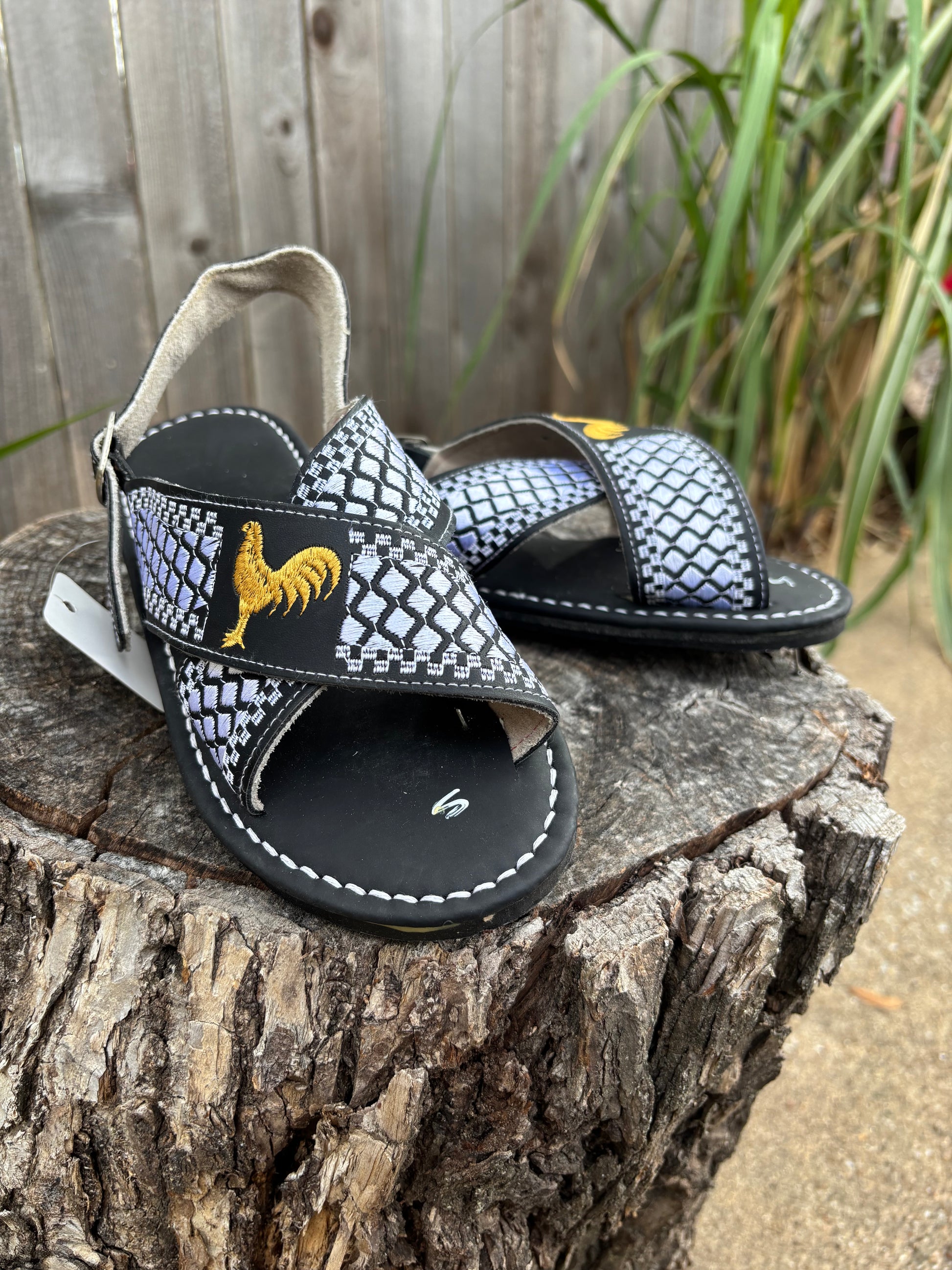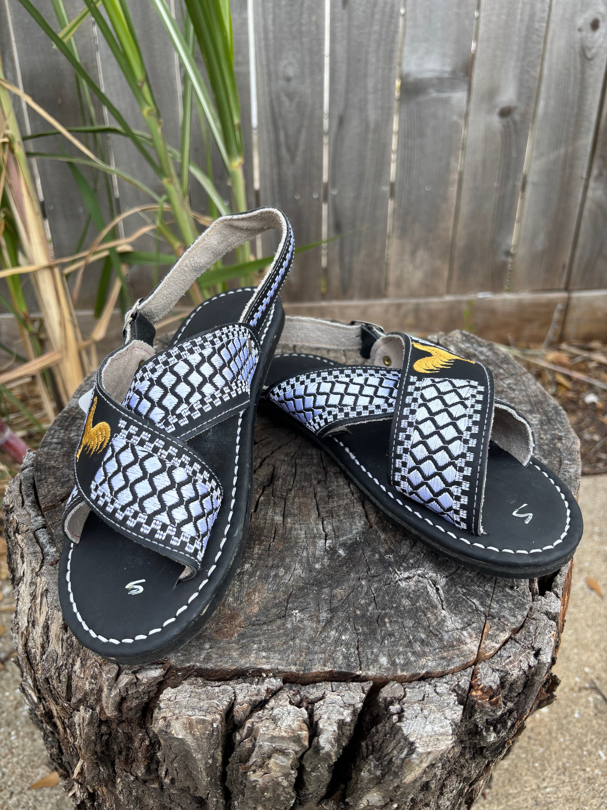 Huaraches Cruzados Gallo Bordado Negro
