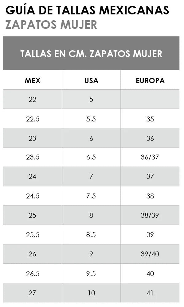- Si usas media talla (por ejemplo 8.5), te recomendamos pedir la talla menor (8).